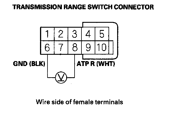 7. Measure the voltage between transmission range switch connector terminals No. 6 and No. 8.
