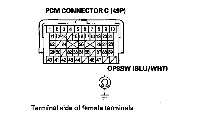 2. Check the 3rd Pressure Switch signal with the HDS in the A/T data list when not in 3rd gear.