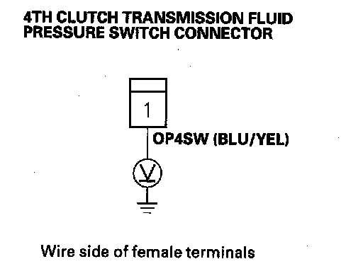 11. Measure the voltage between the 4th clutch transmission fluid pressure switch connector terminal and body ground.