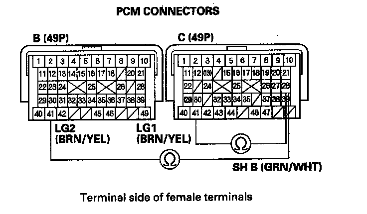 9. Disconnect PCM connectors B (49P) and C (49P).