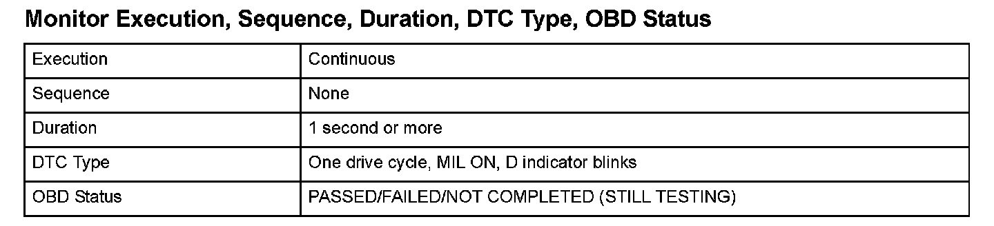 Monitor Execution, Sequence, Duration, DTC Type, OBD Status