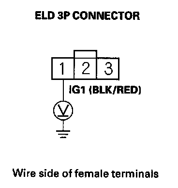 6. Measure the voltage between ELD 3P connector terminal No. 1 and body ground.