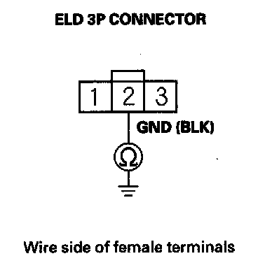 11. Check for continuity between ELD 3P connector terminal No. 2 and body ground.
