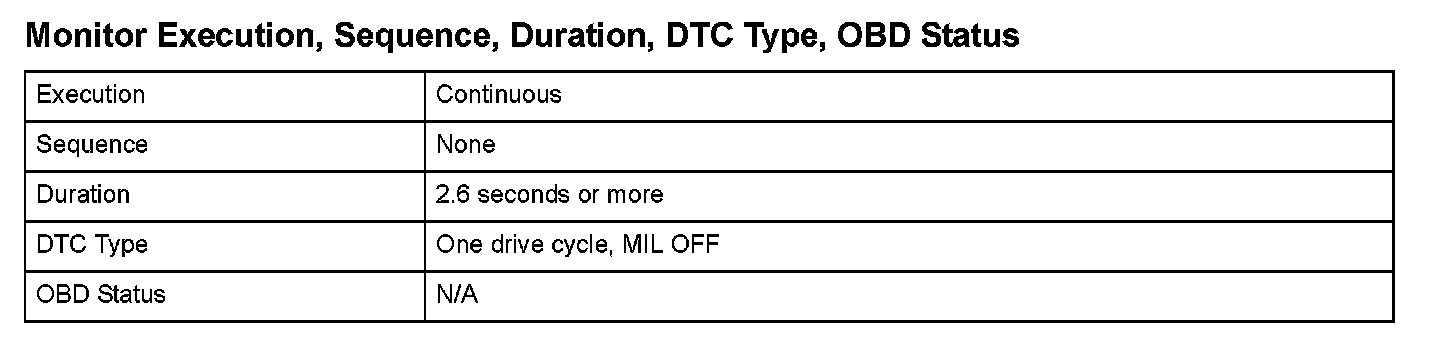 Monitor Execution, Sequence, Duration, DTC Type, OBD Status