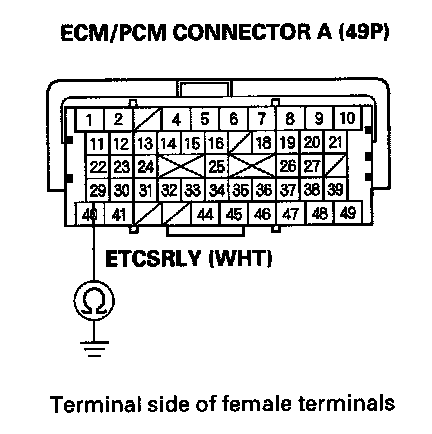 YES - Check for poor connections or loose terminals at the ETCS control relay and the ECM/PCM. If the ECM/PCM was updated, substitute a known-good ECM/PCM, then recheck. If the ECM/PCM was substituted, go to step 1.