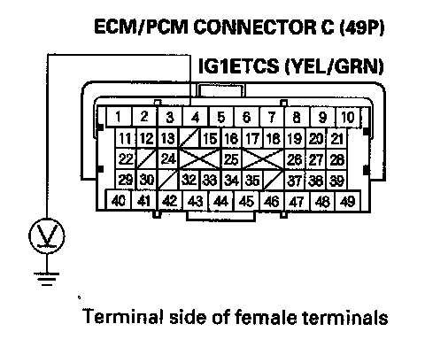11. Measure the voltage between ECM/PCM connector terminal C4 and body ground.