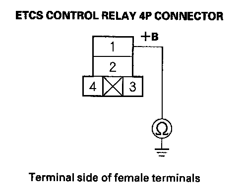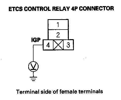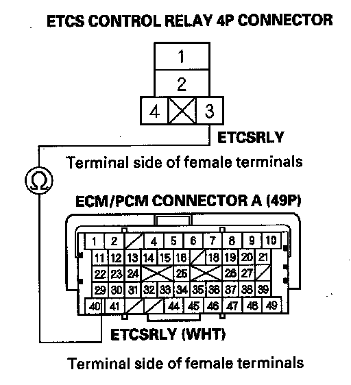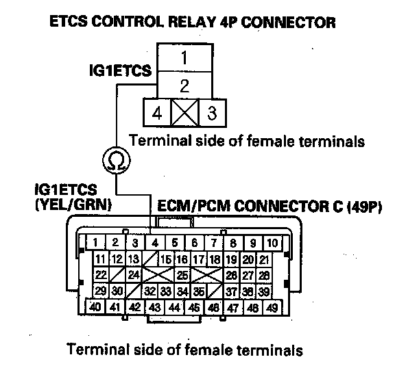 14. Check for continuity between ETCS control relay 4P connector terminal No. 2 and ECM/PCM connector terminal C4.