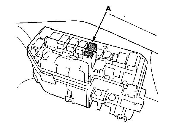 6. Remove the ETCS control relay (A) from the under-hood fuse/relay box.