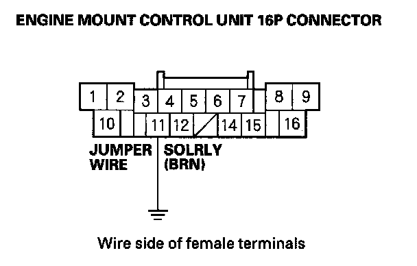 14. Connect the engine mount control unit 16P connector terminal No. 11 and body ground with a jumper wire.