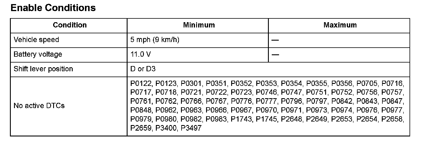 - After driving the vehicle in 3rd gear with D for at least 1.5 seconds.