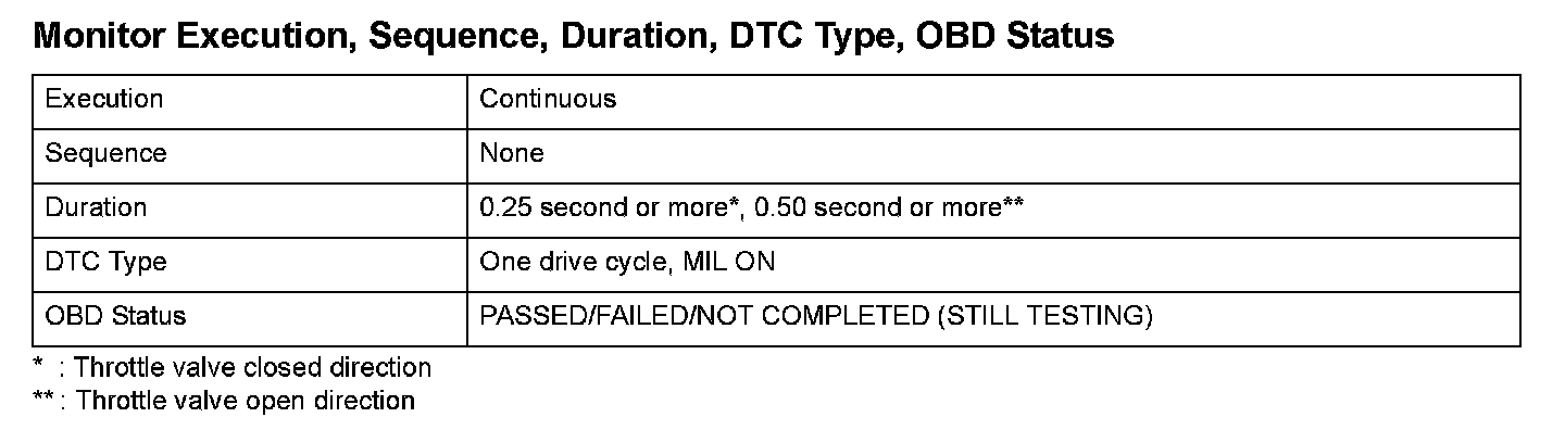 Monitor Execution, Sequence, Duration, DTC Type, OBD Status