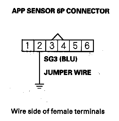 10. Connect APP sensor 6P connector terminal No. 2 to body ground with a jumper wire.