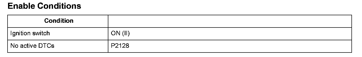 Accelerator pedal position (APP) sensor B is a part of the electronic throttle control system (ETCS), and it is used to convert the position of the accelerator pedal into electrical signals. Based on these signals, the engine control module (ECM)/power-train control module (PCM) controls the throttle actuator so that the throttle position agrees with the accelerator pedal position. If the signal voltage from APP sensor B is a set value or less, the ECM/PCM detects a malfunction and stores a DTC.