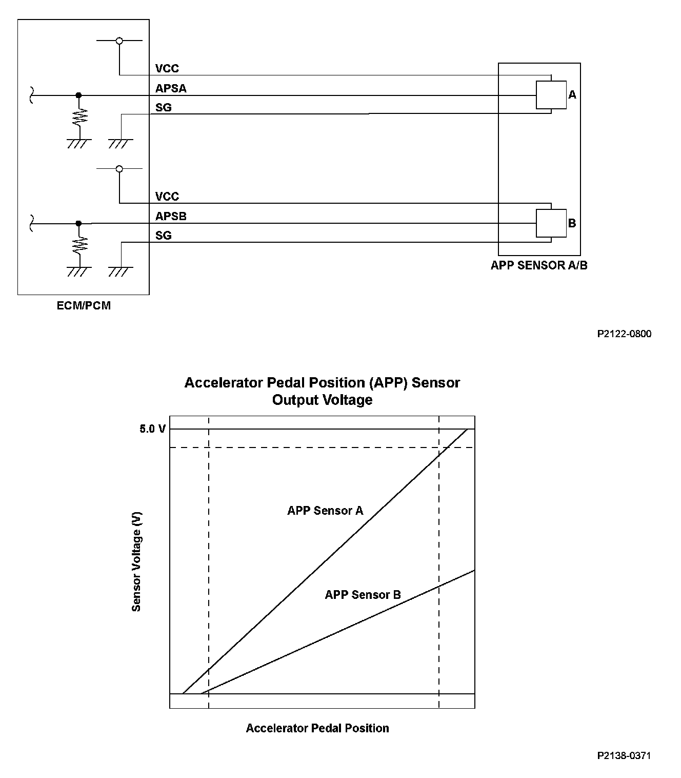 DTC P2138: Accelerator Pedal Position (APP) Sensor A/B (Throttle Position (TP) Sensor D/E) Incorrect Voltage CorrelationGeneral Description