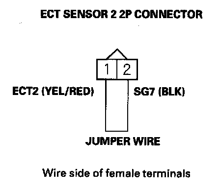 9. Remove the jumper wire from the ECT sensor 2 2P connector.