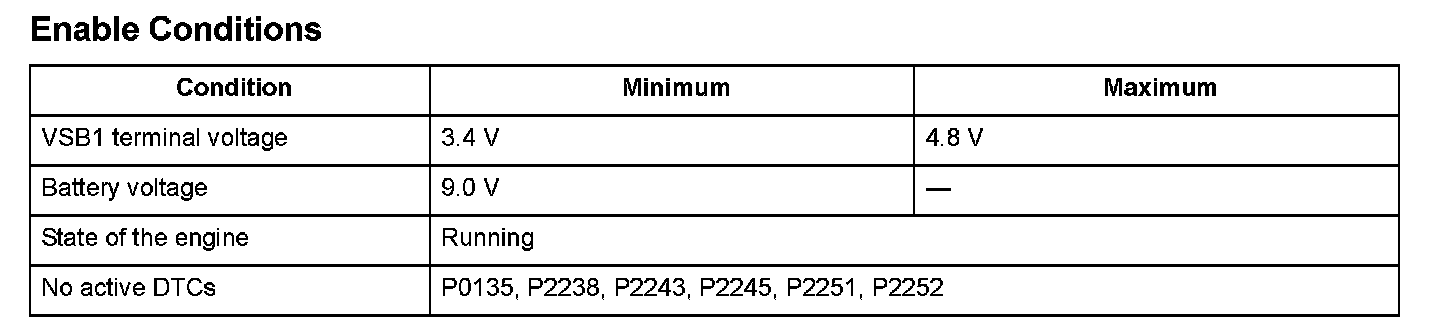 The rear air/fuel ratio (A/F) sensor (bank 1, sensor 1) is installed in the exhaust manifold and detects oxygen content in the exhaust gas. The rear A/F sensor transmits a signal to the engine control module (ECM)/powertrain control module (PCM). The ECM/PCM controls fuel injection duration by comparing the target air/fuel ratio with the rear A/F sensor signal. The sensor includes the VS cell, the pump cell, the atmospheric reference cavity, the diffusion layer, and the heater, and it enables overall feedback control. If the IPB1 terminal voltage is out of a specified range, the ECM/PCM detects a malfunction and stores a DTC.