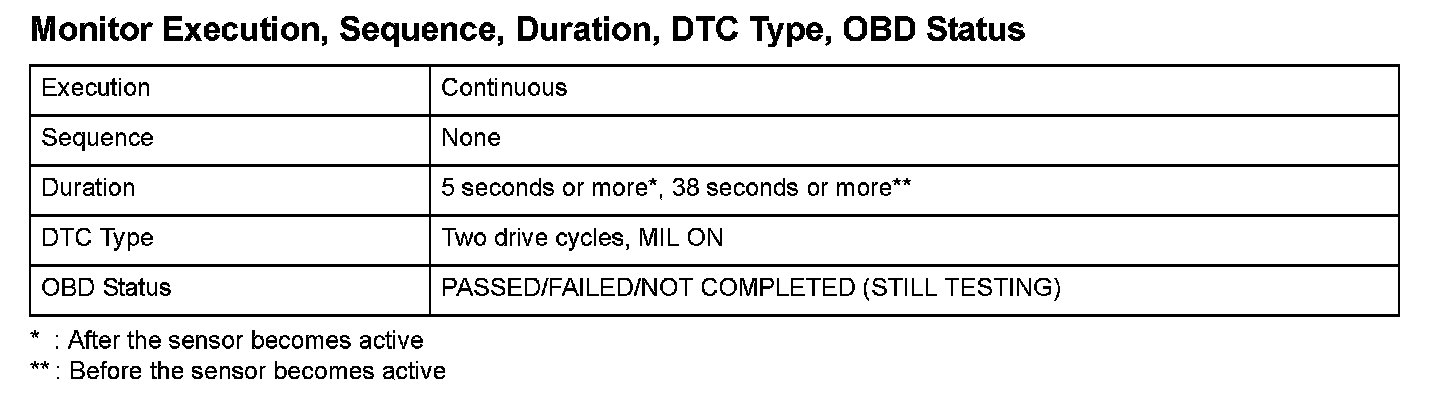Monitor Execution, Sequence, Duration, DTC Type, OBD Status