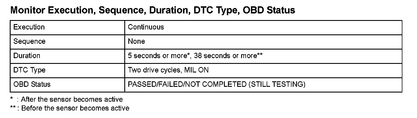 Monitor Execution, Sequence, Duration, DTC Type, OBD Status