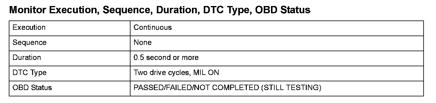 Monitor Execution, Sequence, Duration, DTC Type, OBD Status