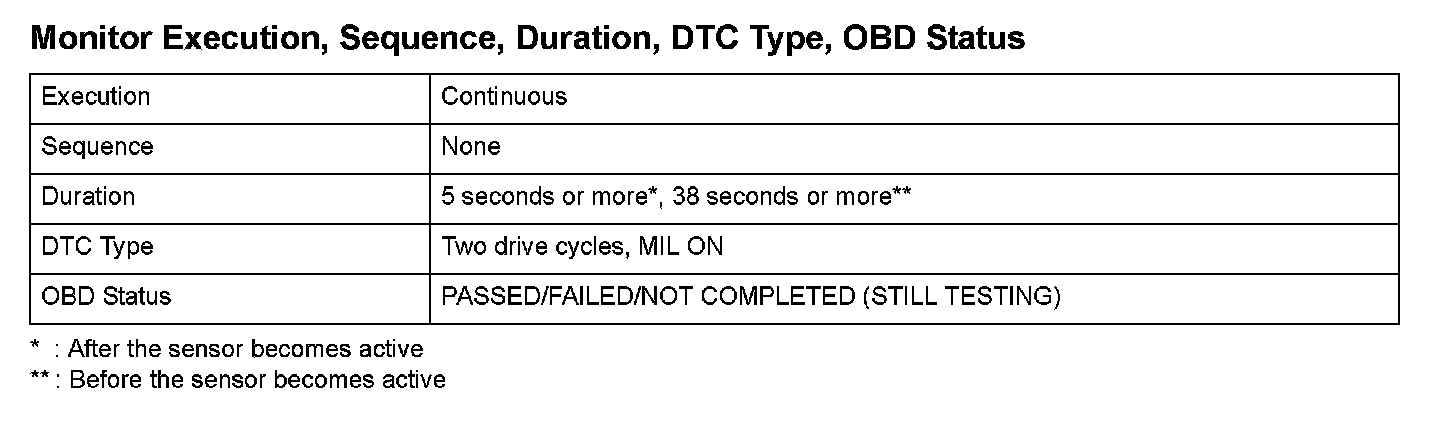 Monitor Execution, Sequence, Duration, DTC Type, OBD Status