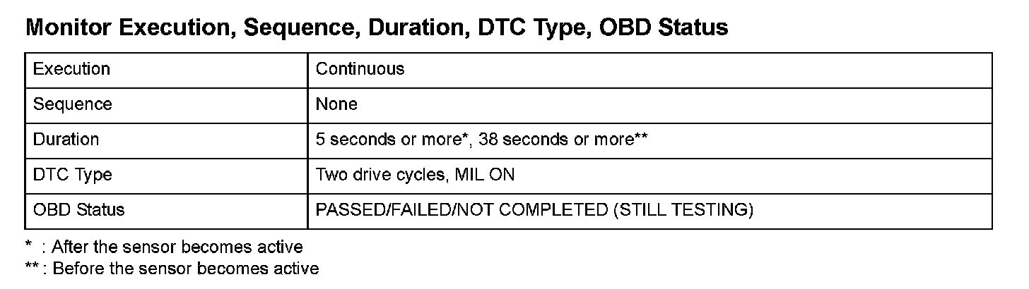 Monitor Execution, Sequence, Duration, DTC Type, OBD Status