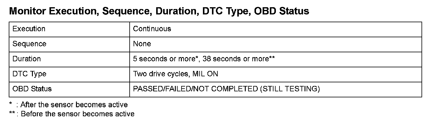 Monitor Execution, Sequence, Duration, DTC Type, OBD Status