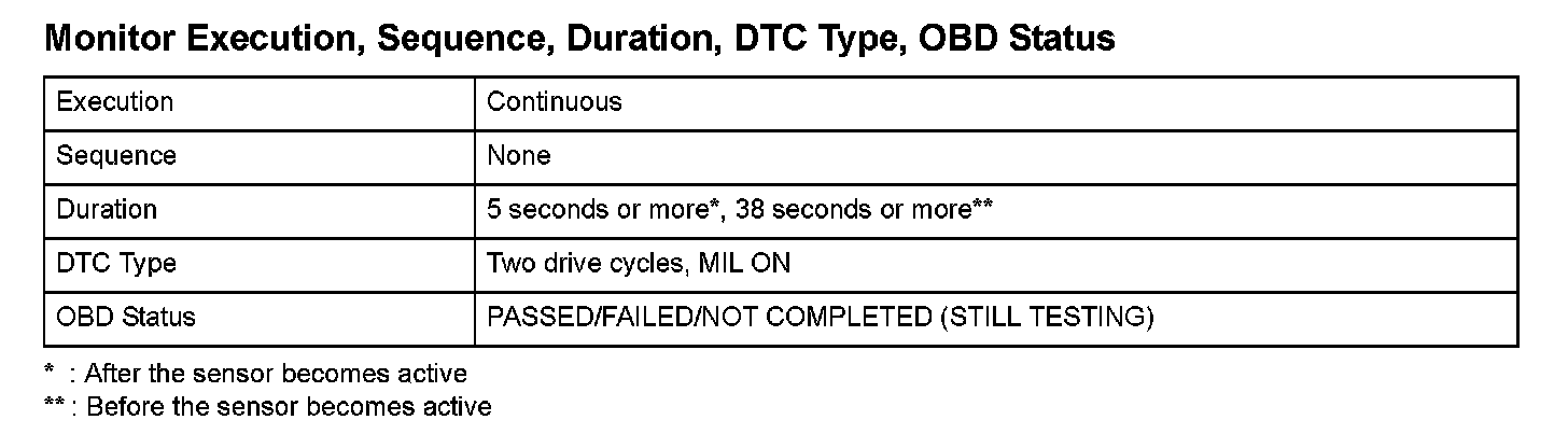 Monitor Execution, Sequence, Duration, DTC Type, OBD Status