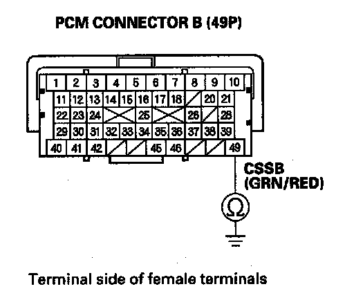 12. Check for continuity between PCM connector terminal B49 and body ground.