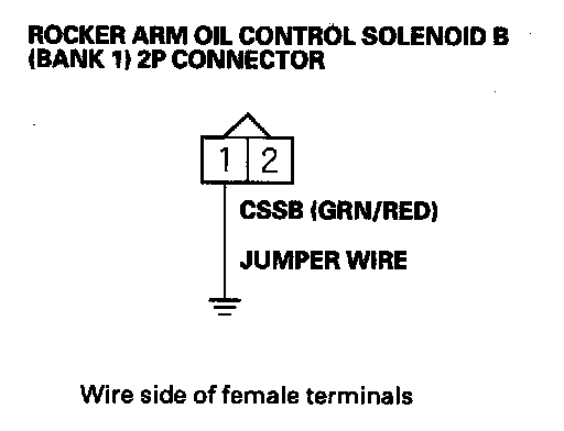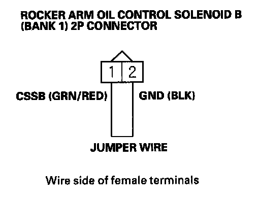 NOTE: Do not remove the jumper wire from the rocker arm oil control solenoid B (Bank 1) connector.