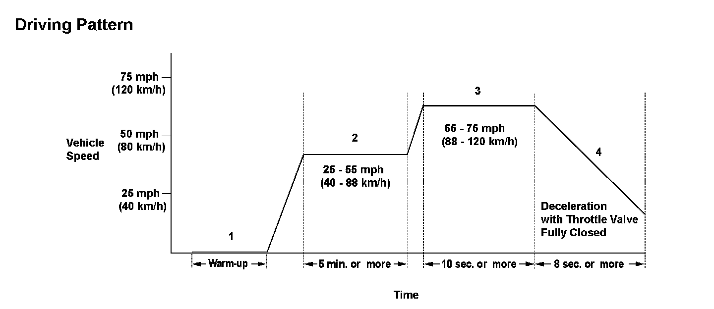 3. Then, drive immediately at a steady speed between 55 - 75 mph (88 - 120 km/h) for at least 10 seconds.