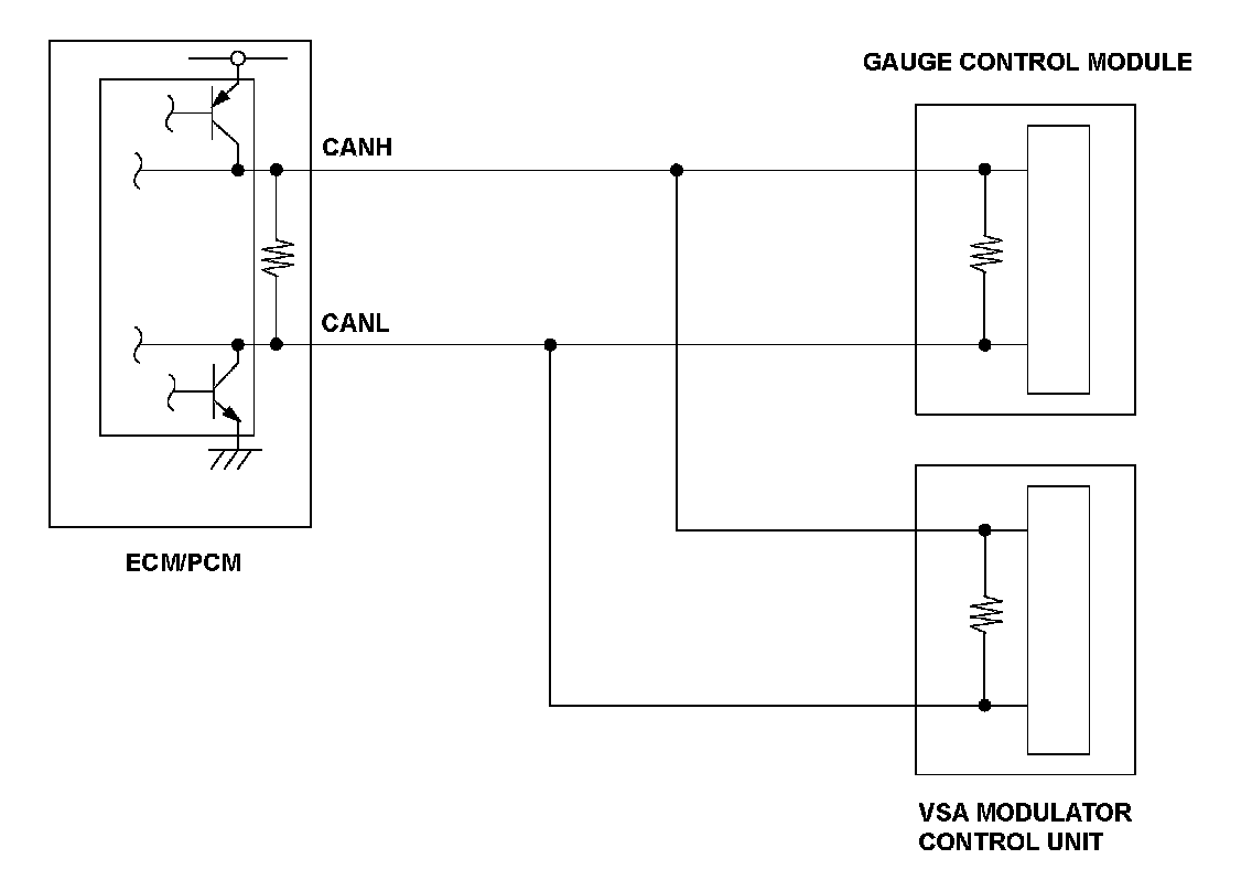 The controller area network (CAN) transmits/receives pulsing signals to/from the control modules simultaneously by using two signal lines (CANH and CANL). When the engine control module (ECM)/powertrain control module (PCM) does not receive the signals from the gauge control module via the CAN lines for more than a set time, the ECM/PCM detects a malfunction and a DTC is stored.