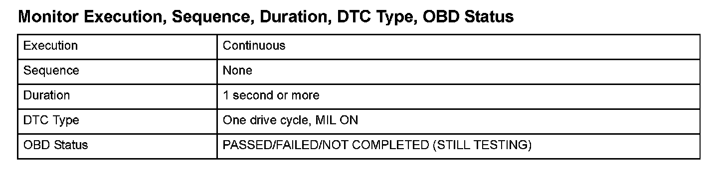 Monitor Execution, Sequence, Duration, DTC Type, OBD Status