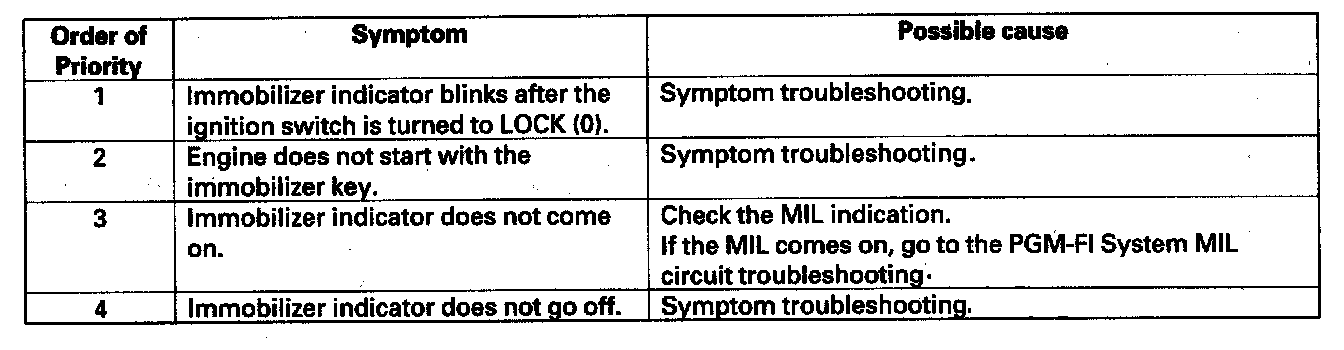 Troubleshoot the immobilizer system by the order of the priority shown: