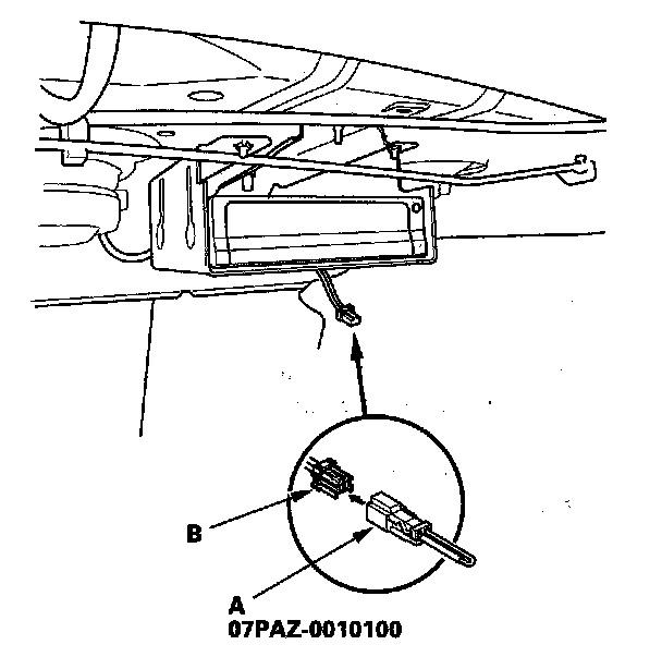 2. Connect the SCS service connector (A) to the navigation service connector (B) located behind the navigation unit.