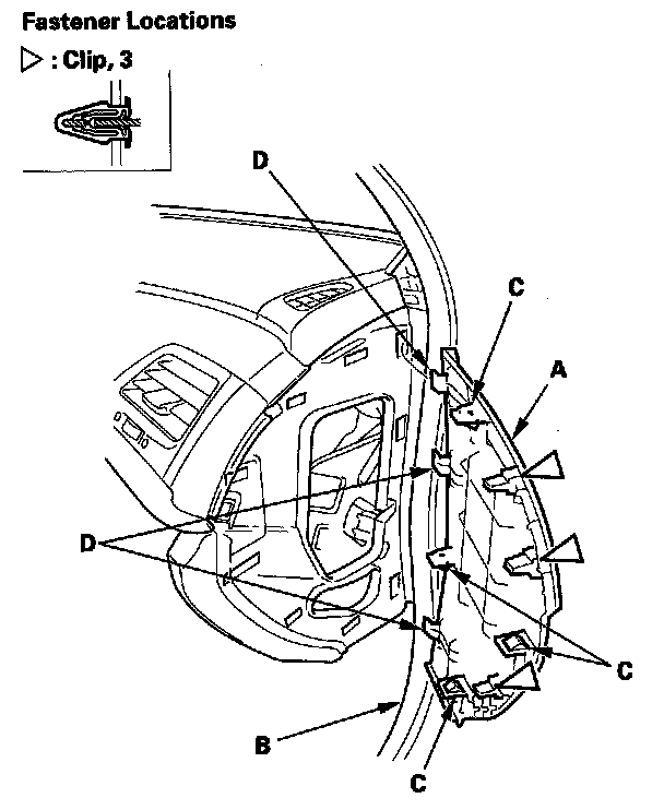 - If the dashboard side lid clips are damaged or stress-whitened, replace them with new ones.
