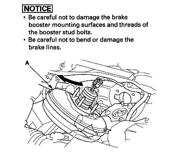 10. Remove the brake booster (A) from the engine compartment.