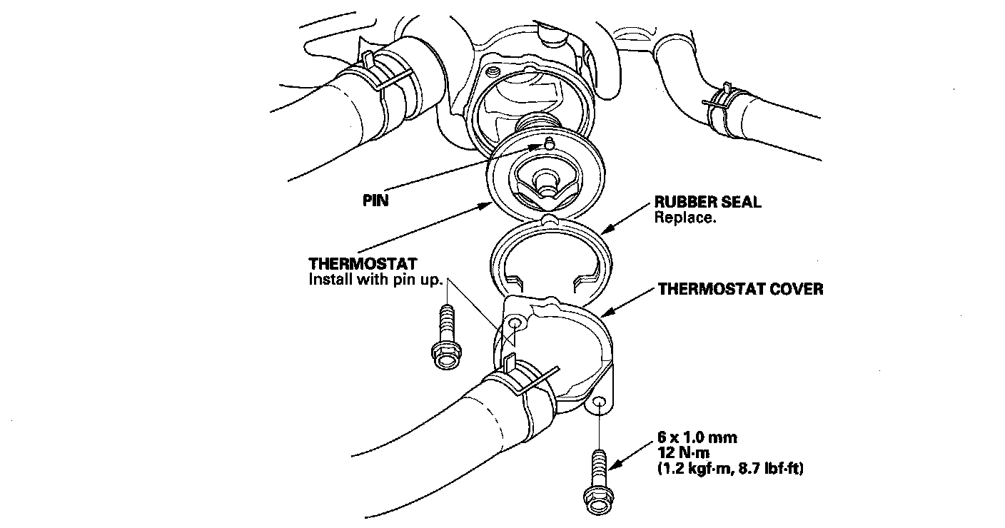 4. Install the new thermostat with a new rubber seal, then install the thermostat cover.