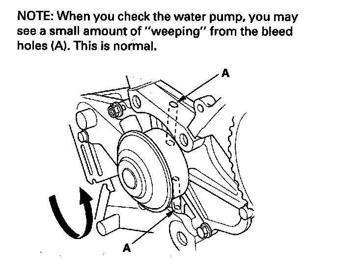 Turn the water pump pulley counterclockwise. Check that it turns freely. If it doesn't turn freely, replace the water pump.
