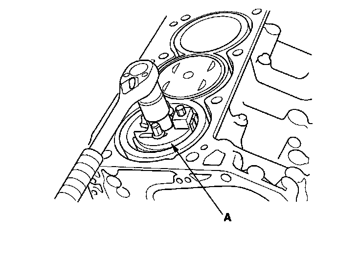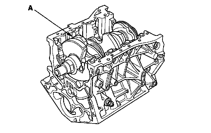 21. Lift the crankshaft (A) out of the engine block, being careful not to damage the journals and the CKP pulse plate.
