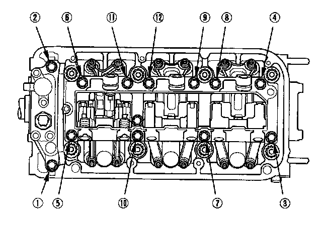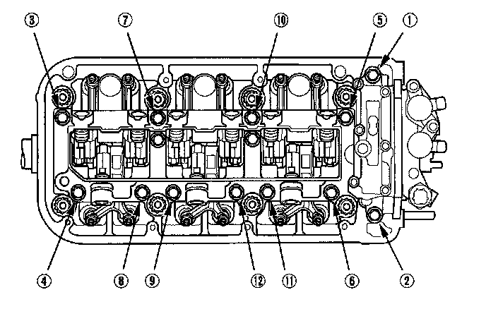 - 1 Loosen the rocker shaft bridge mounting bolts and the rocker shaft holder mounting bolts in sequence two turns at a time, to prevent damaging the valves or the rocker arm assembly.