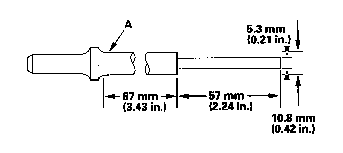 2. As illustrated, use a commercially available air impact valve guide driver (A) modified to fit the diameter of the valve guides. In most cases, the same procedure can be done using the valve guide driver and a conventional hammer.