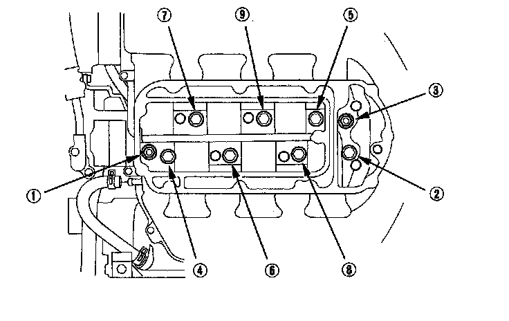 8. Remove the intake manifold mounting bolts and nuts sequentially in three steps, then remove the intake manifold.