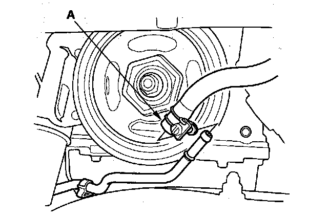34. Remove the P/S hose (A), then plug the line and the hose.