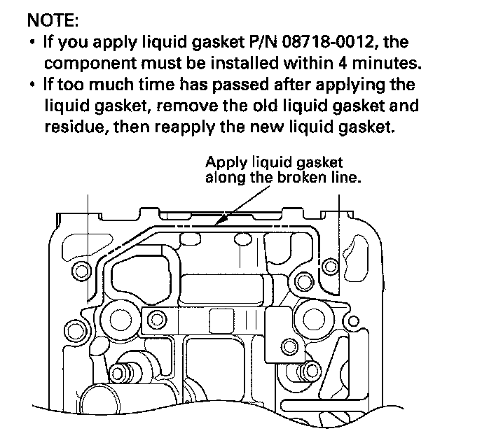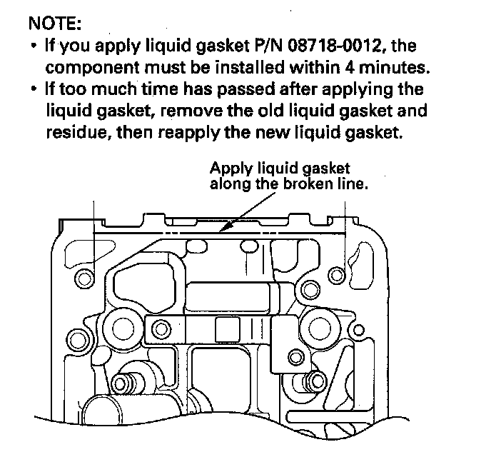 8. Apply liquid gasket, P/N 08717-0004, 08718-0001, 08718-0003, or 08718-0009, evenly to the rocker shaft holder mating surface of the cylinder head. Install the component within 5 minutes of applying the liquid gasket.