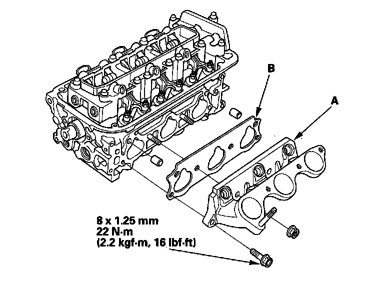 9. Set the rocker arm assembly in place, and loosely install the bolts. Make sure that the rocker arms are properly positioned on the valve stems.