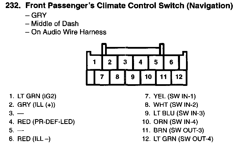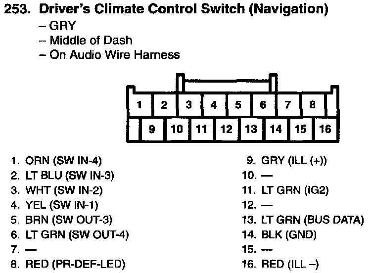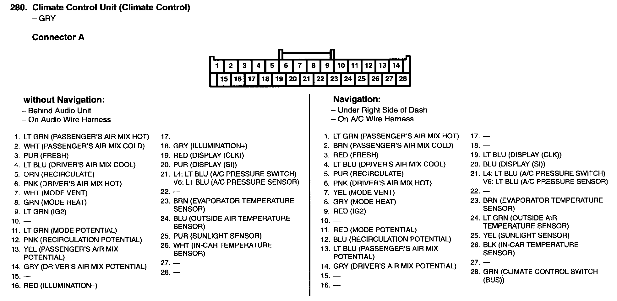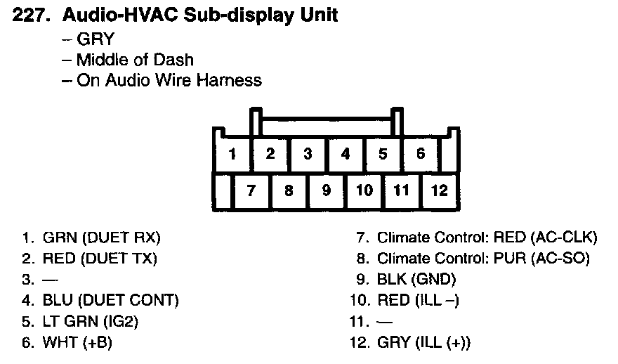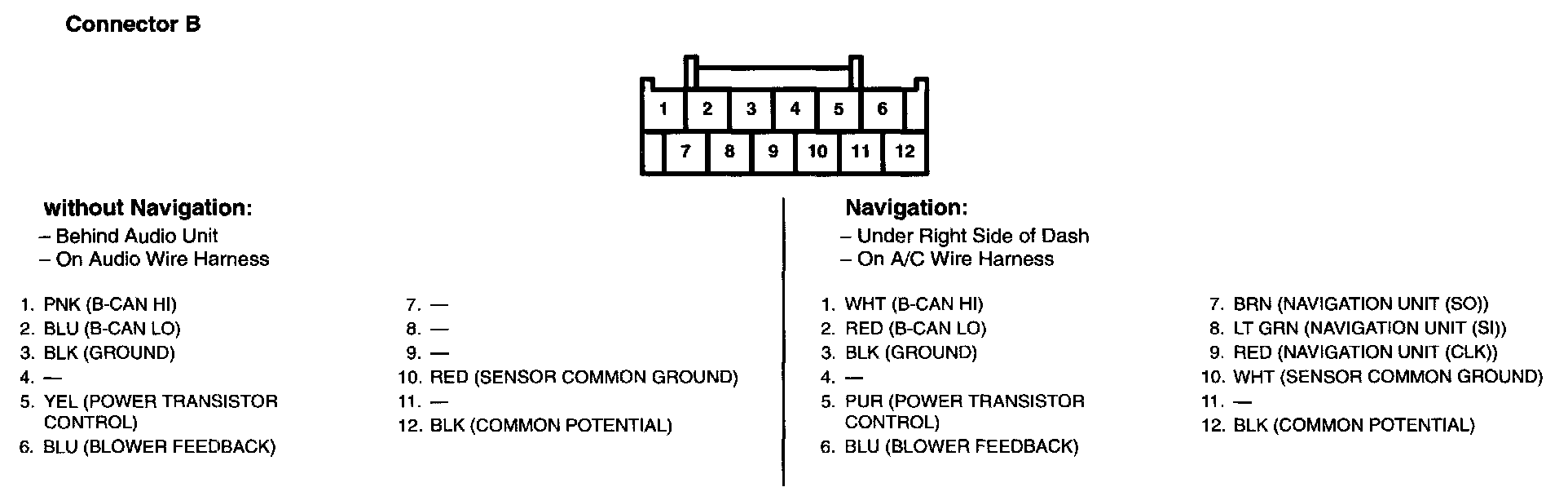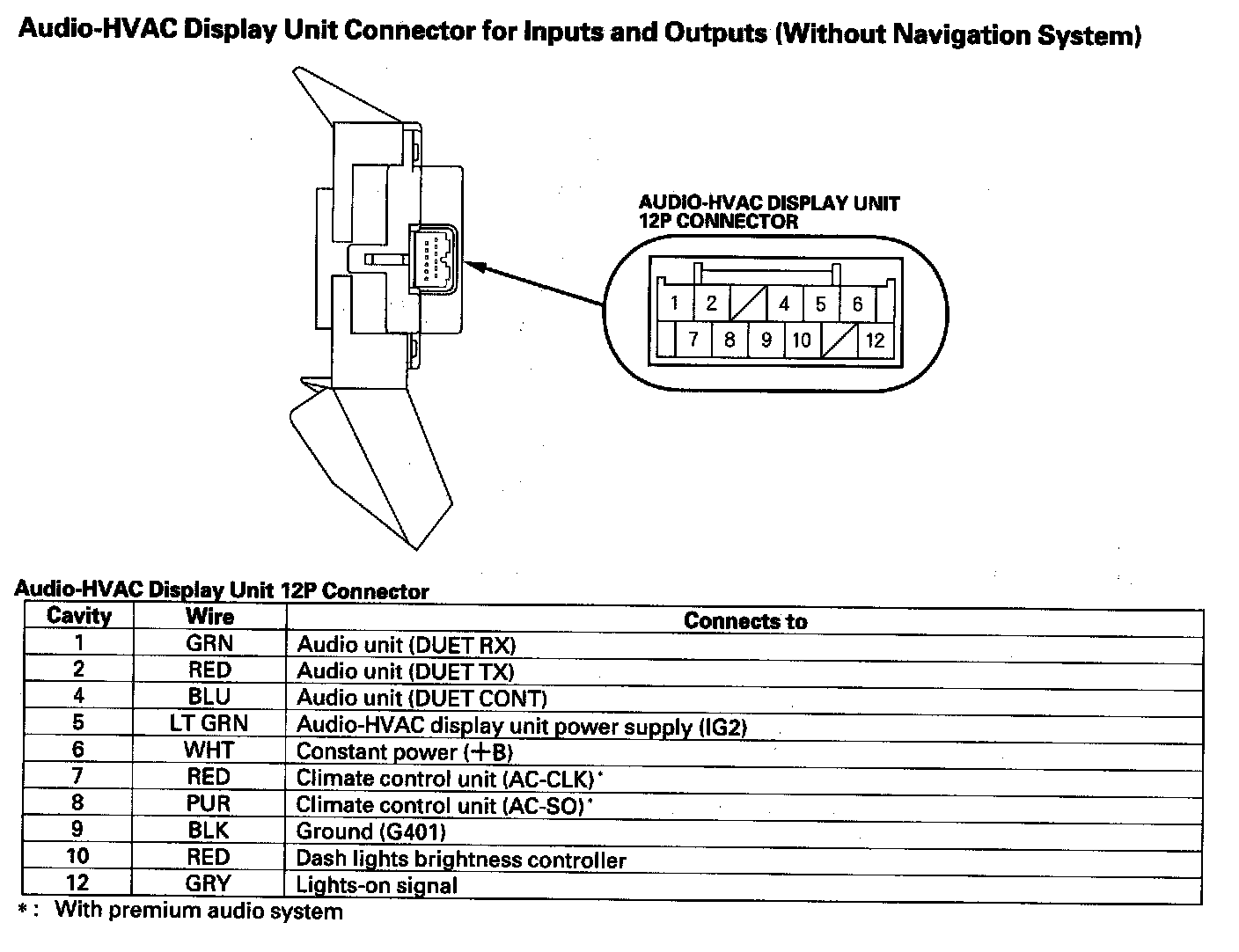 Audio-HVAC Subdisplay Unit Connector For Inputs And Outputs (Without Navigation System):