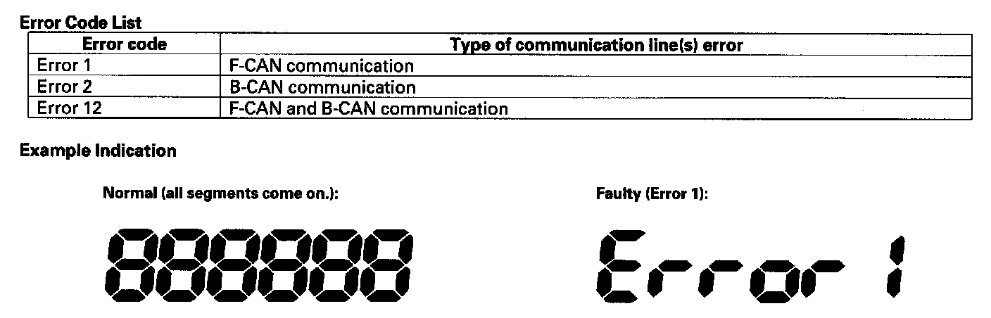 If all segments come on, the communication line is OK. If faulty, the word Error will be indicated on the odometer display followed by a number(s).