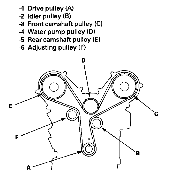 Timing Belt InstallationNOTE: The following procedure is for installing a used timing belt. If you are installing a new belt, refer to the timing belt replacement procedure.