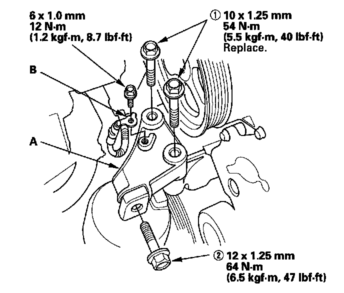 17. Install the upper half of the side engine mount bracket (A), then tighten the mounting bolts in the numbered sequence shown.