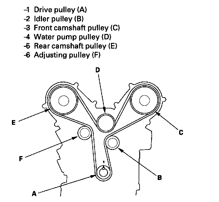 Timing Belt ReplacementNOTE: The following procedure is for the installation of a new timing belt. If you are installing a used belt, refer to the timing belt installation procedure.